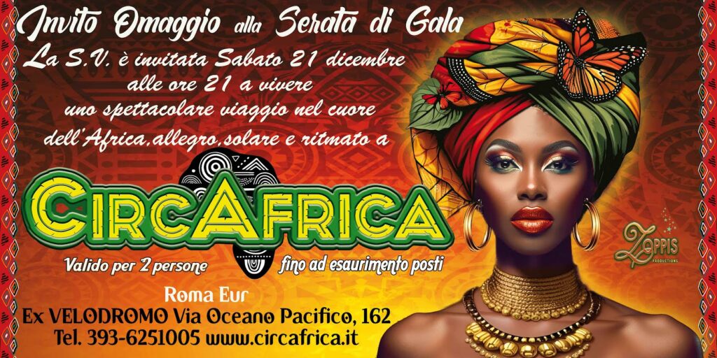 Il mondo magico di CircAfrica sta per arrivare in Italia, a Roma all’ex Velodromo dell’Eur in Via Oceano Pacifico 162 dal 21 Dicembre al 2 febbraio 2025 portando con sé una miriade di talenti straordinari provenienti da diverse nazioni africane. Per la prima volta nel nostro paese, dopo una trionfale tournée in Austria e Germania, grazie alla Zoppis Show Productions, leader nella creazione di grandi show per la famiglia, questo spettacolo unico nel suo genere promette di incantare il pubblico con la sua esplosione di colori, ritmi e musiche travolgenti.