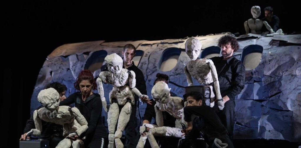 Autrice e regista teatrale riconosciuta per la sua capacità di fondere narrazione scenica, linguaggi visivi e ricerca documentaria in opere che esplorano l’esperienza umana nel profondo, con OLTRE Fabiana Iacozzilli- attraverso la drammaturgia di Linda Dalisi, sette performer e i puppets progettati da Paola Villani- racconta una potentissima storia di sopravvivenza, metamorfosi e rinascita oltre ogni comprensione.