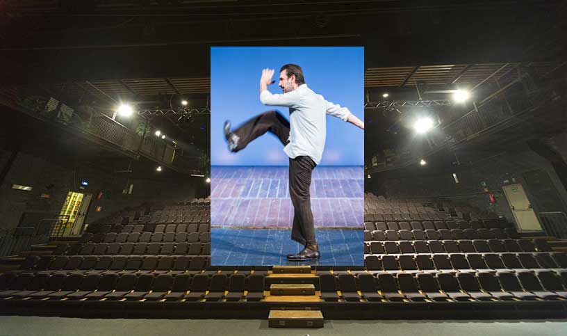 (Foto: l’attore Fabrizio Gifuni sullo sfondo del Teatro Vascello).