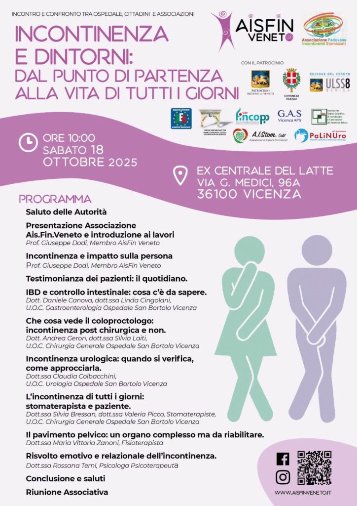 Il Dr. Pilati, Direttore del Dipartimento di Chirurgia Oncologica dell’esofago e delle vie digestive dello IOV, ha partecipato al Convegno “Incontinenza e Stomie”, svoltosi a Castelfranco Veneto presso l’Ospedale San Giacomo in occasione della Giornata dello Stomizzato. L’incontinenza fecale può essere di tre tipi: passiva (perdita di feci senza accorgersene), da urgenza (bisogno improvviso di andare in bagno) o combinata. Ci sono anche diversi gradi di severità. Il trattamento dipende dalla tipologia e dall’intensità. Le cause dell’incontinenza possono essere legate all’età, ma anche a traumi (anche chirurgici), alterazioni neurologiche, ridotta mobilità o stipsi. Esistono cure, il primo passo è non nascondersi. I trattamenti possono essere conservativi o meno. È importante curare l’alimentazione in modo da mantenere sano l’intestino e poi rivolgersi alla riabilitazione e al biofeedback per rinforzare la muscolatura del pavimento pelvico. Esiste anche la terapia farmacologica fino ad arrivare a trattamenti chirurgici più o meno invasivi fino ad arrivare alla colostomia. Molto utile è il sostegno psicologico ed emotivo al paziente, che sperimenta un profondo disagio sociale.
